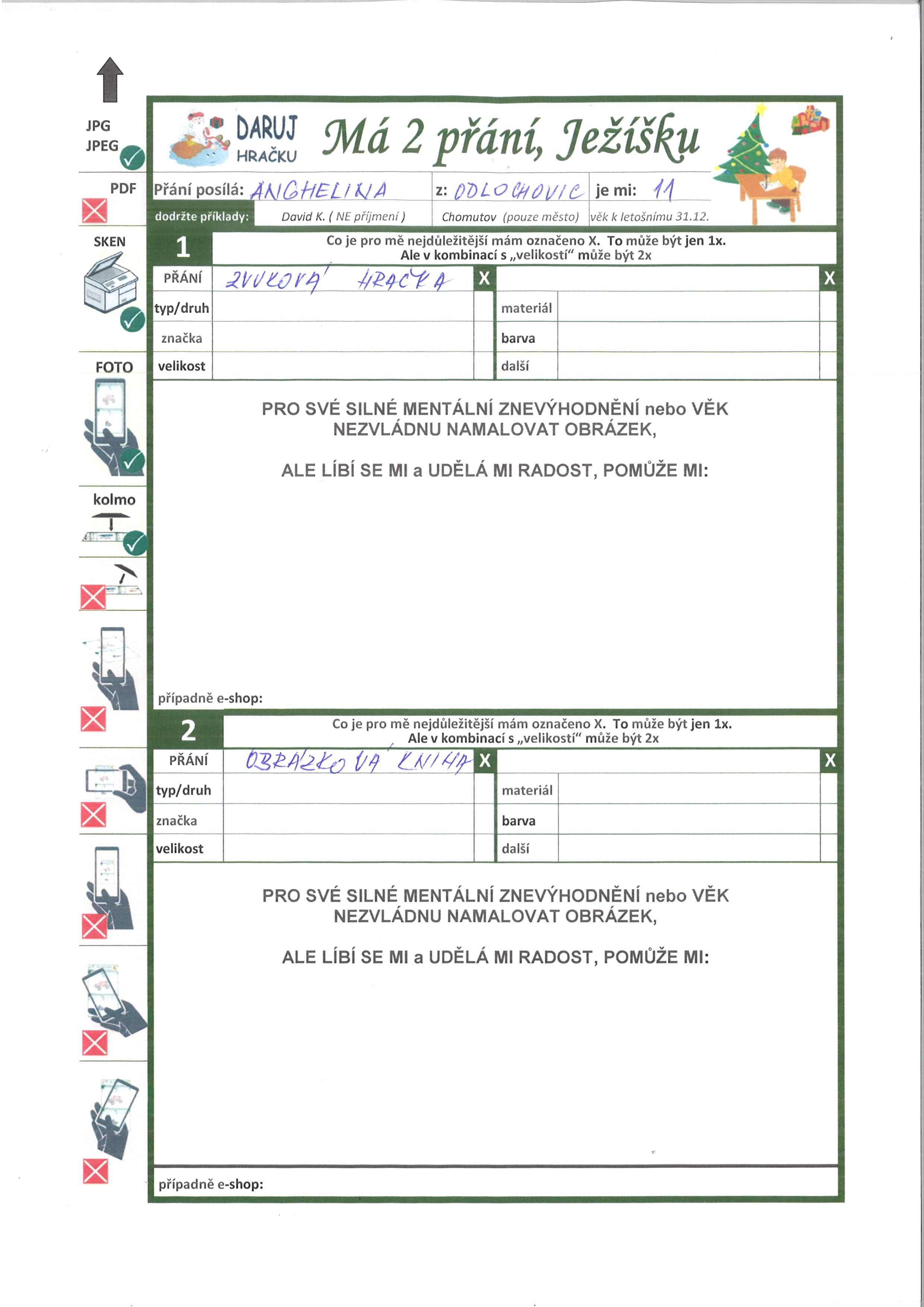 Poznámka: Angelina ráda poslouchá hudbu, koupe se, skáče na trampolíně