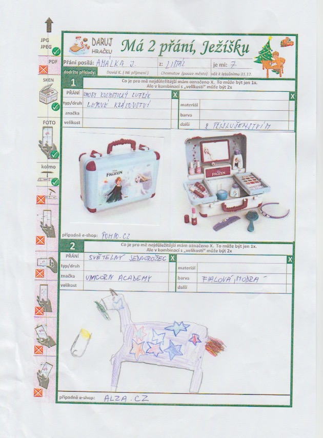 Poznámka: Tvrdohlavé, mazlivé a ukecané sluníčko, které svým úsměvem zahřeje u srdce. Přejeme jí, aby ji Ježíšek nezklamal a splnil jí její přání.