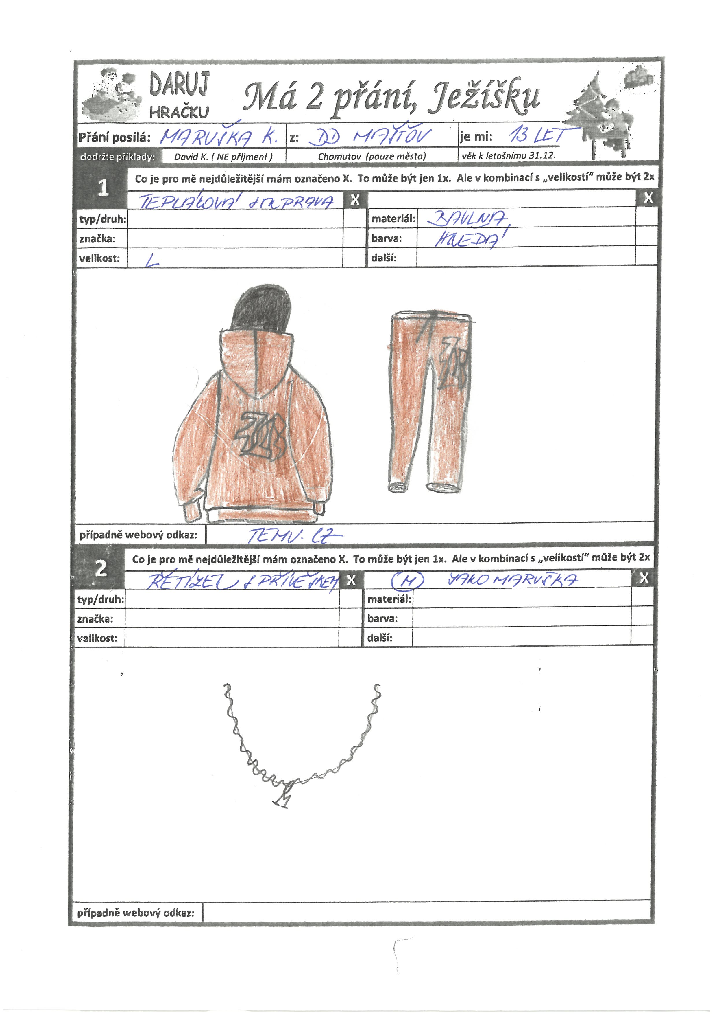 Originální přání: Řetízek s přívěškem M jako Maruška