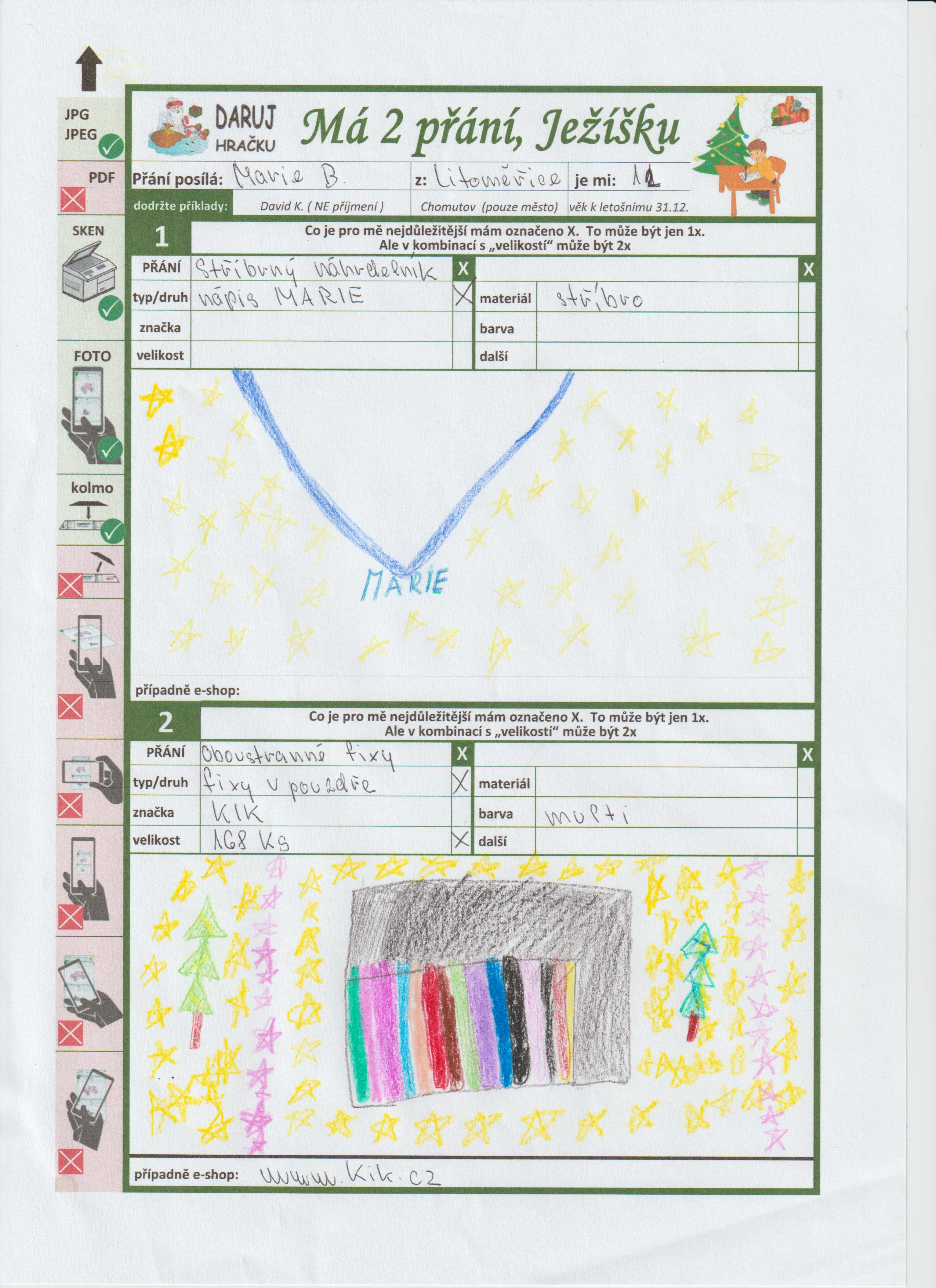 Poznámka: Maruška ráda maluje, chodí tancovat a je skvělá pomocnice.