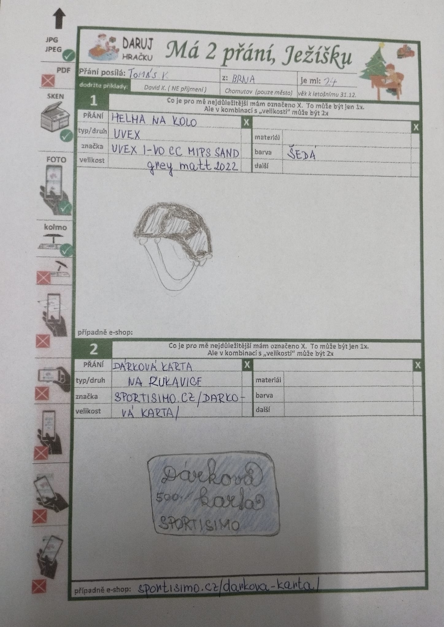Originální přání: Helma na kolo