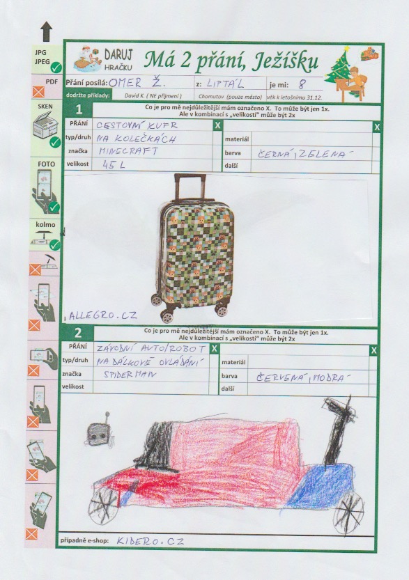 Poznámka: Omér je chlapec, kterého občas nejde vidět, ale uslyšíte ho vždycky. Je to naše zlatíčko, které miluje školu a rád si hraje se stavebnicí a hlavně legem. Přejeme si, ať se mu splní všechna přání.