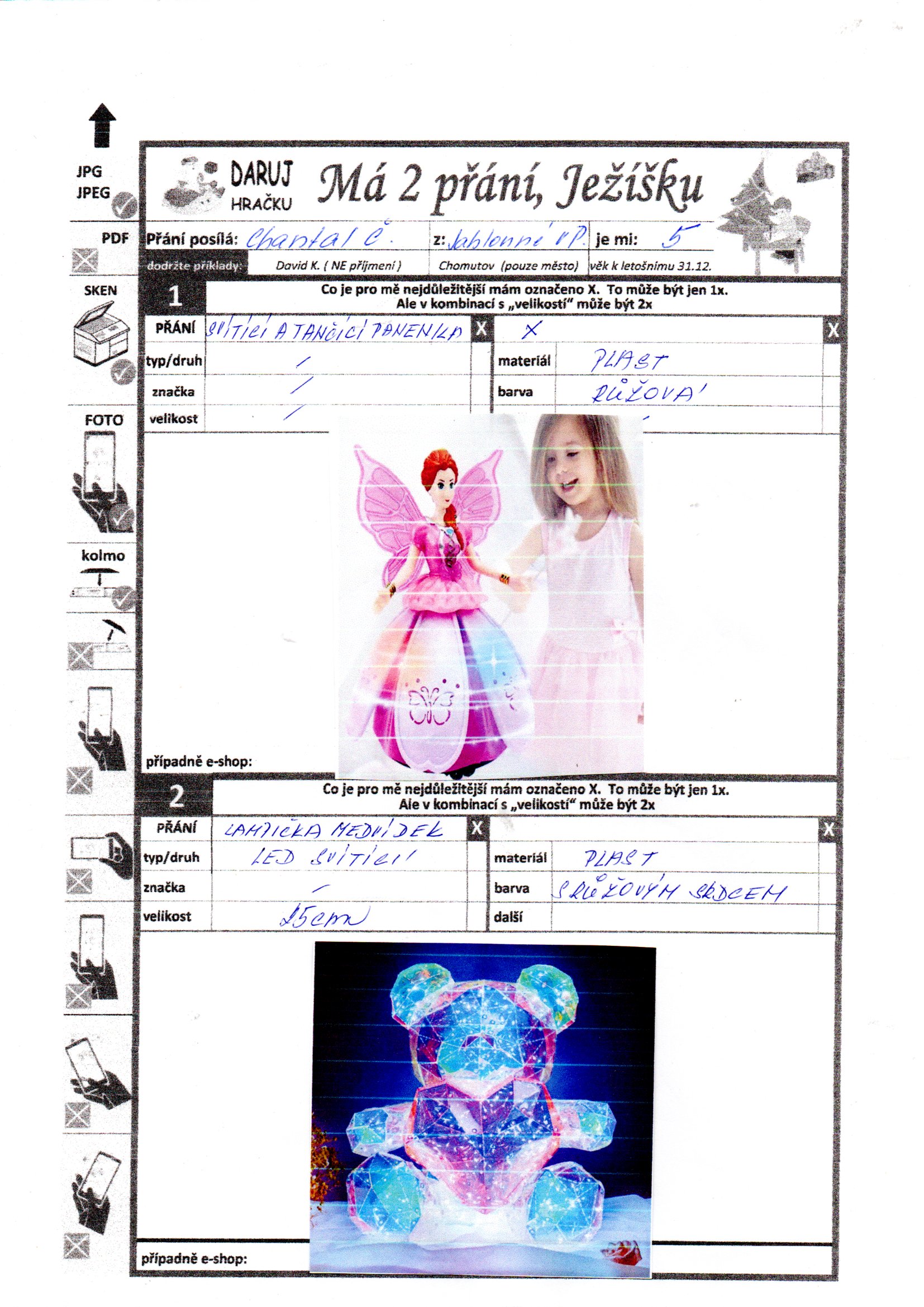 Poznámka: Velmi sdílná dívenka. Umí ve svým věku vše o komentovat. Vůbec se nestydí při komunikaci. I Chantalka je plná otázek jako její sestřička.