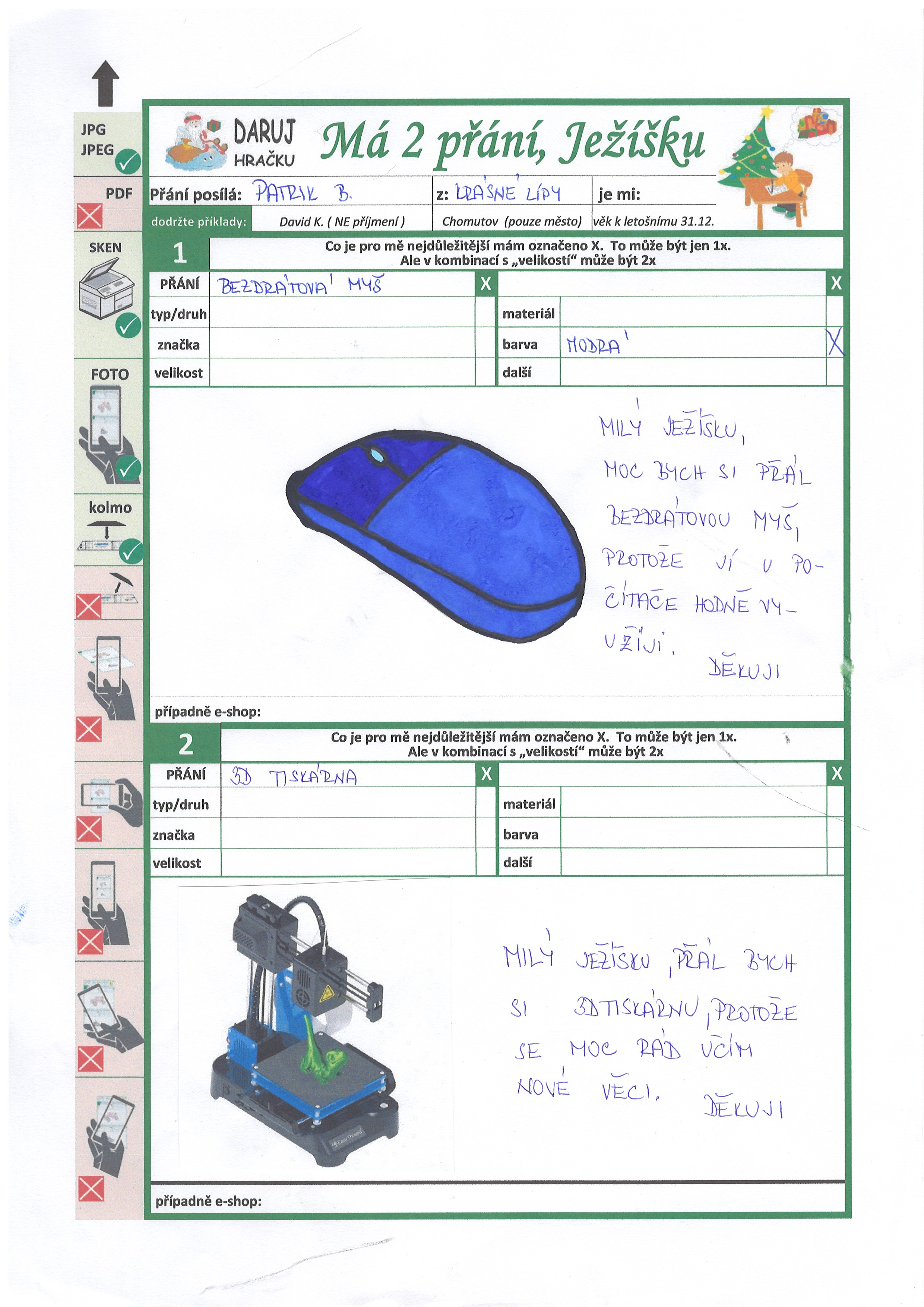 Poznámka: Ahoj Ježíšku, jsem kluk, co moc rád staví lego. Taky mám rád knížky a Star Wars.