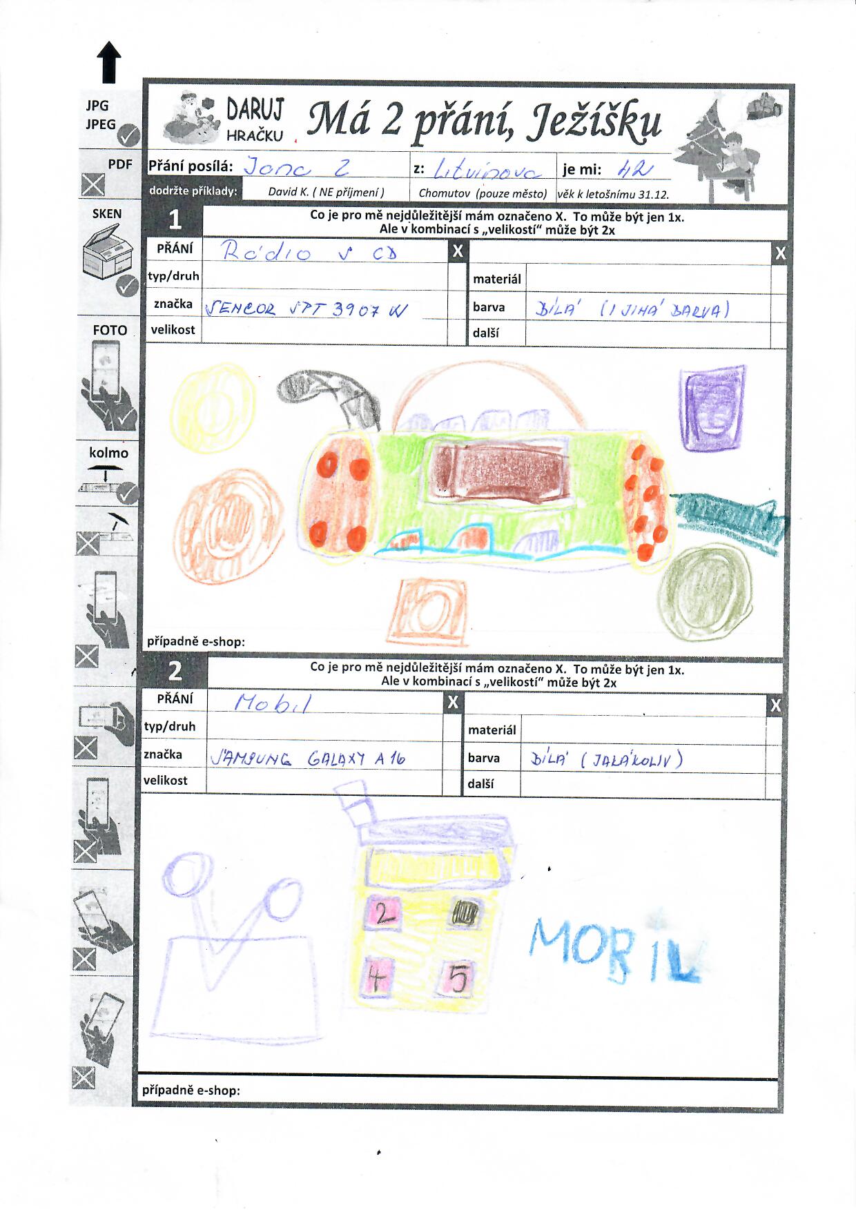 Zájmy: kreslení, vybarvování mandal, puzzle, poslech hudby