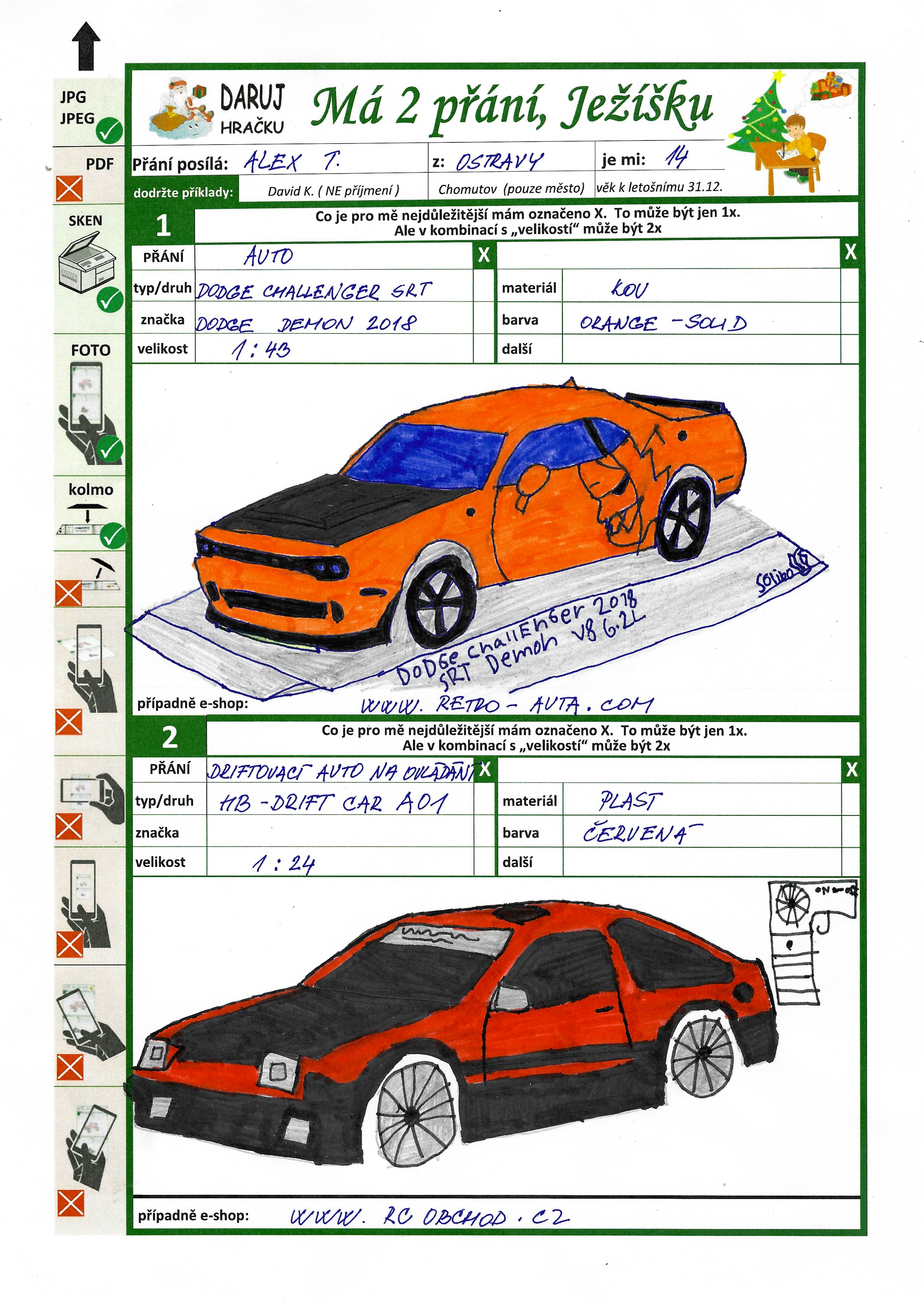 Poznámka: Alex si sám staví modely aut. Kupuje si je po částech z kapesného. Je to jeho velká záliba. Je trpělivý a baví ho to.