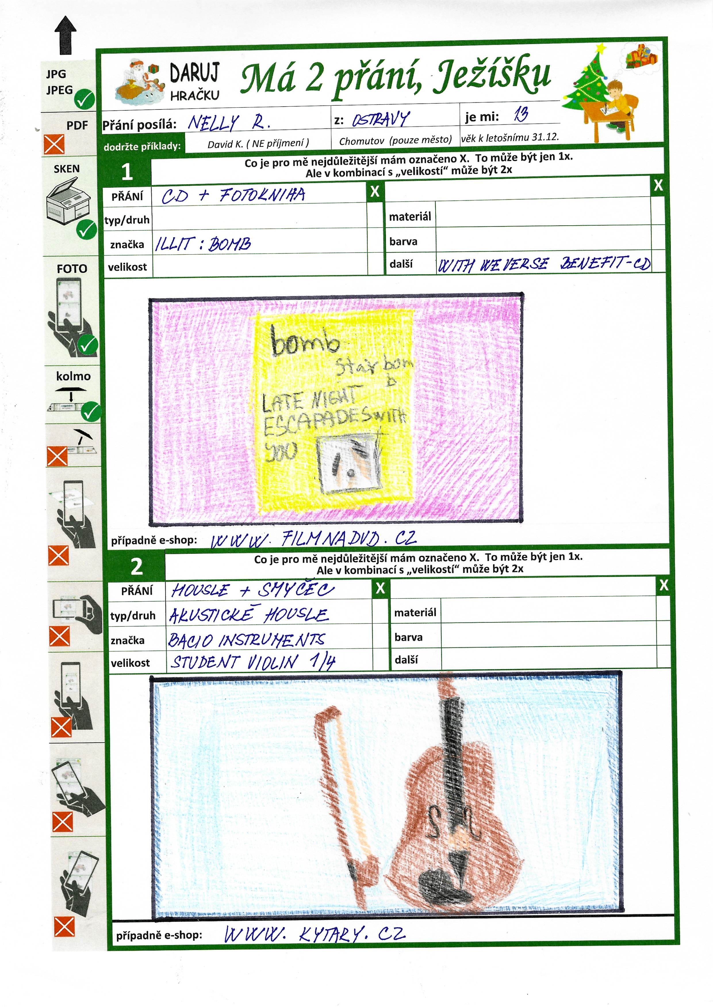 Poznámka: Nelly je velmi tichá, hodná slečna. Má ráda hudbu. Budou to její první Vánoce v dětském domově.